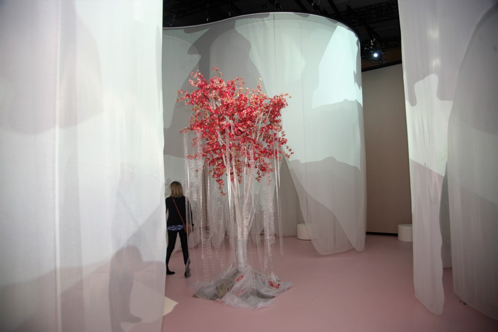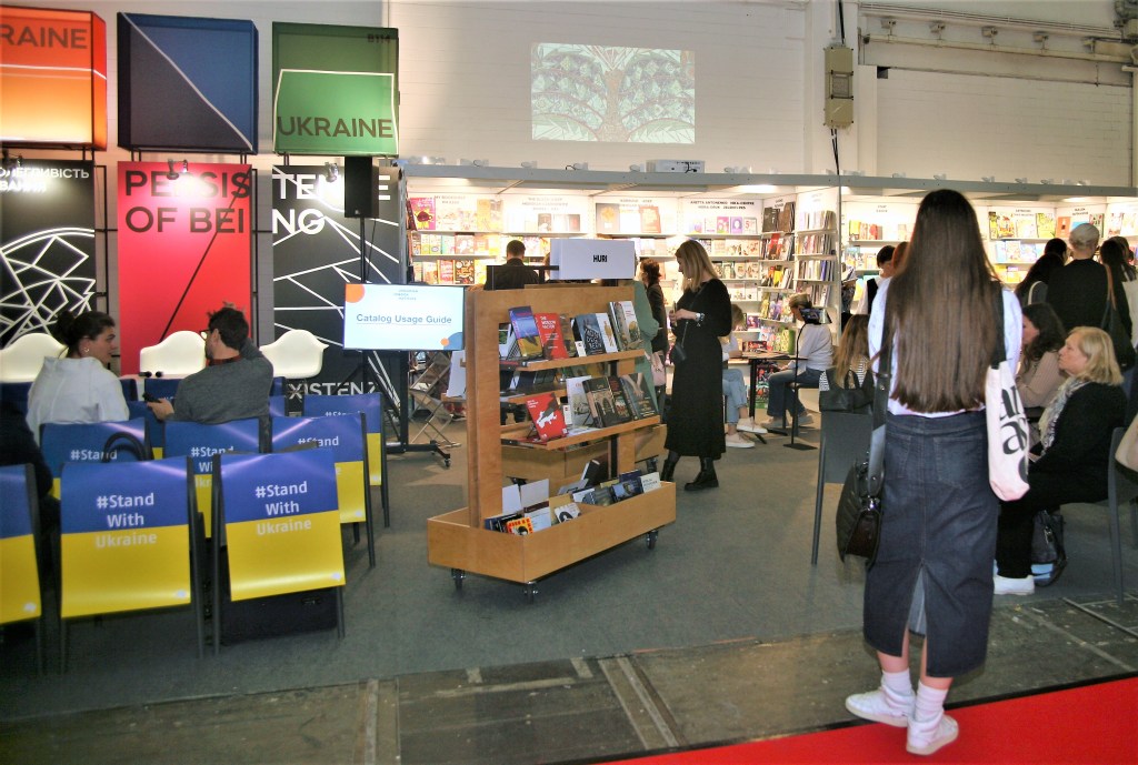 Стенд Украины — Настойчивость Существования: Голоса и события Украины[3] – главная мысль которого была выражена цитатой Сергея Жадана «Що вони можуть нам зробити, поки ми чуємо один одного?», концептуально исполнен по мотивам Дерева Жизни Аллы Горской. Мозаичное панно Дерево Жизни было создано художницей в 1967 году, в Мариуполе. Вскоре после открытия, министерство культуры Украины приказало уничтожить работу, но главный архитектор Мариуполя Бочаров спас произведение, укрыв его простенком. Самой художнице повезло меньше: защитить ее было не кому, ее убили агенты КГБ три года спустя, 28 ноября 1970. После обретения независимости Украиной, панно было вновь открыто для публики. И вот этим летом, антиукраинские силы довели начатое до конца: панно уничтожено московитской артиллерией.